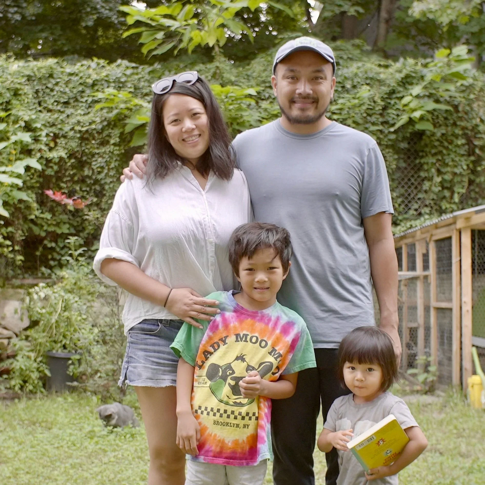 We’re Alice and Gregg—longtime Brooklyn residents and the owners of this brownstone. We live upstairs with our kids and occasionally a foster pup.